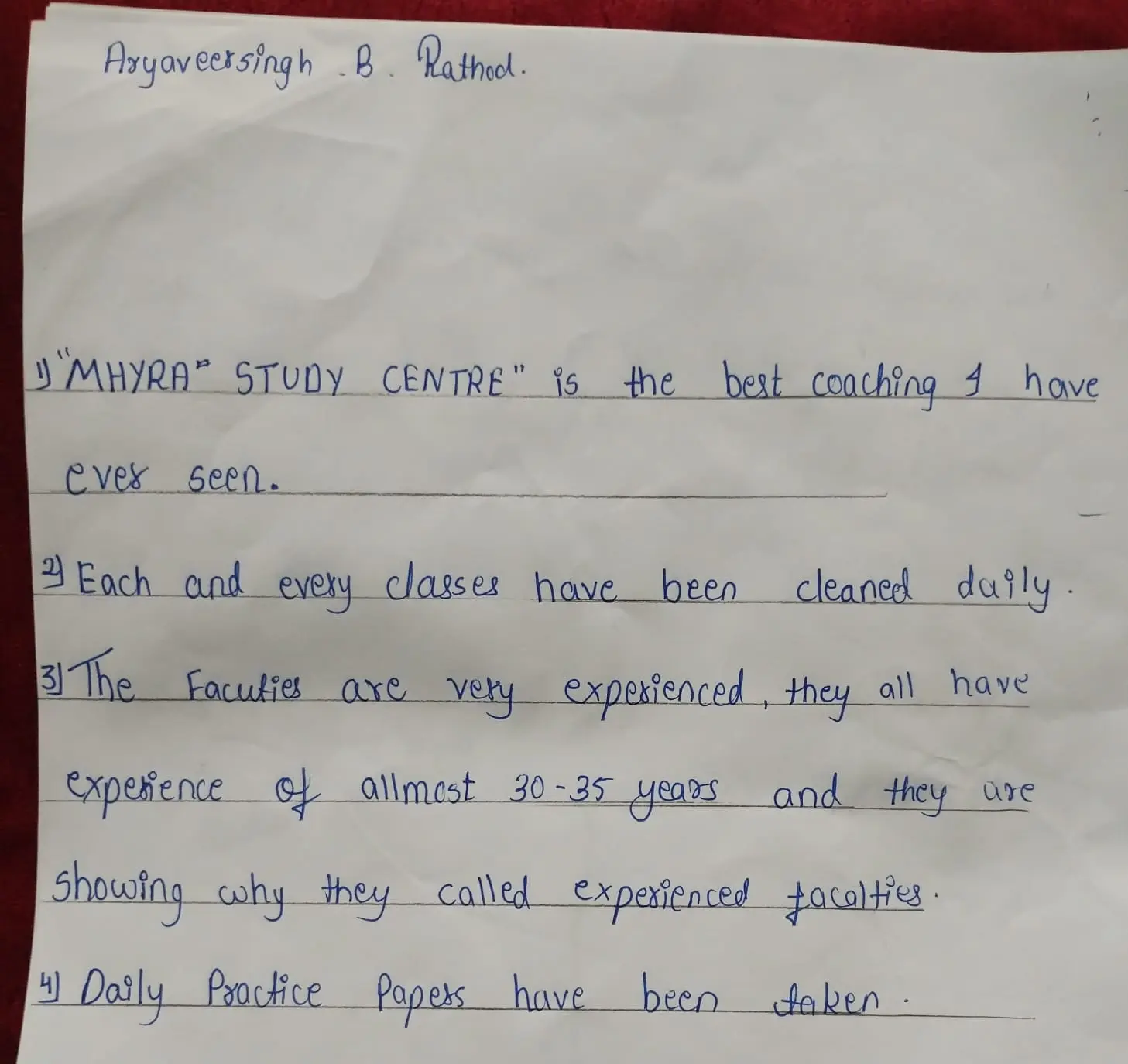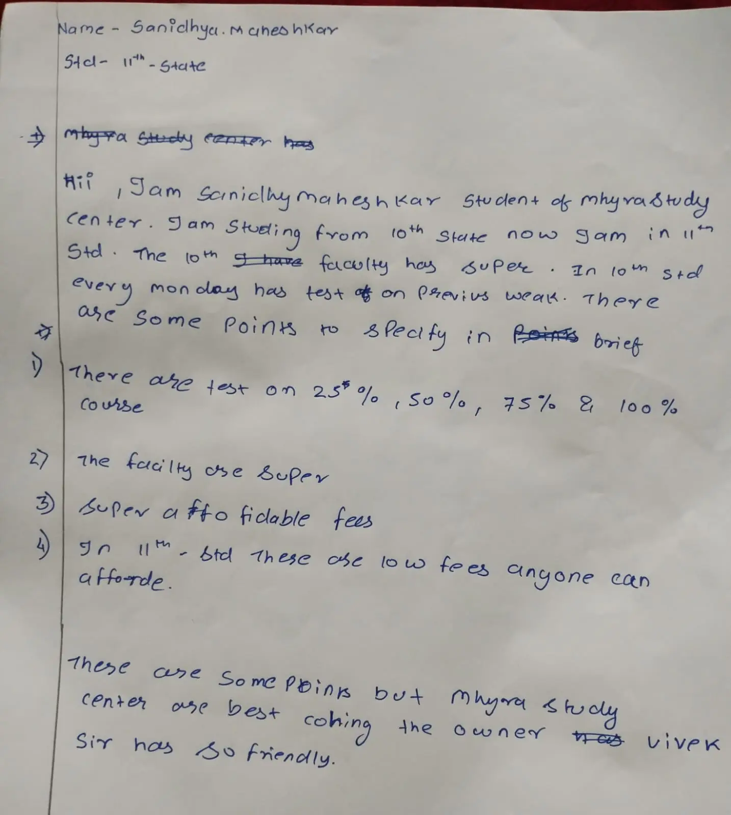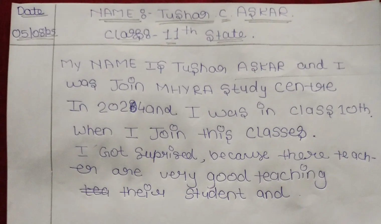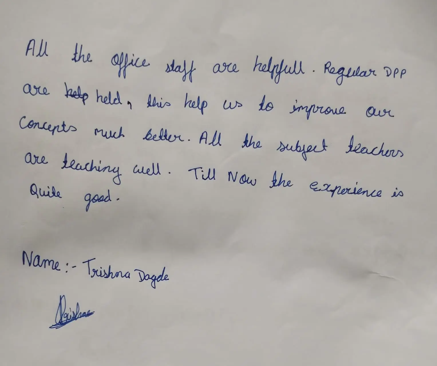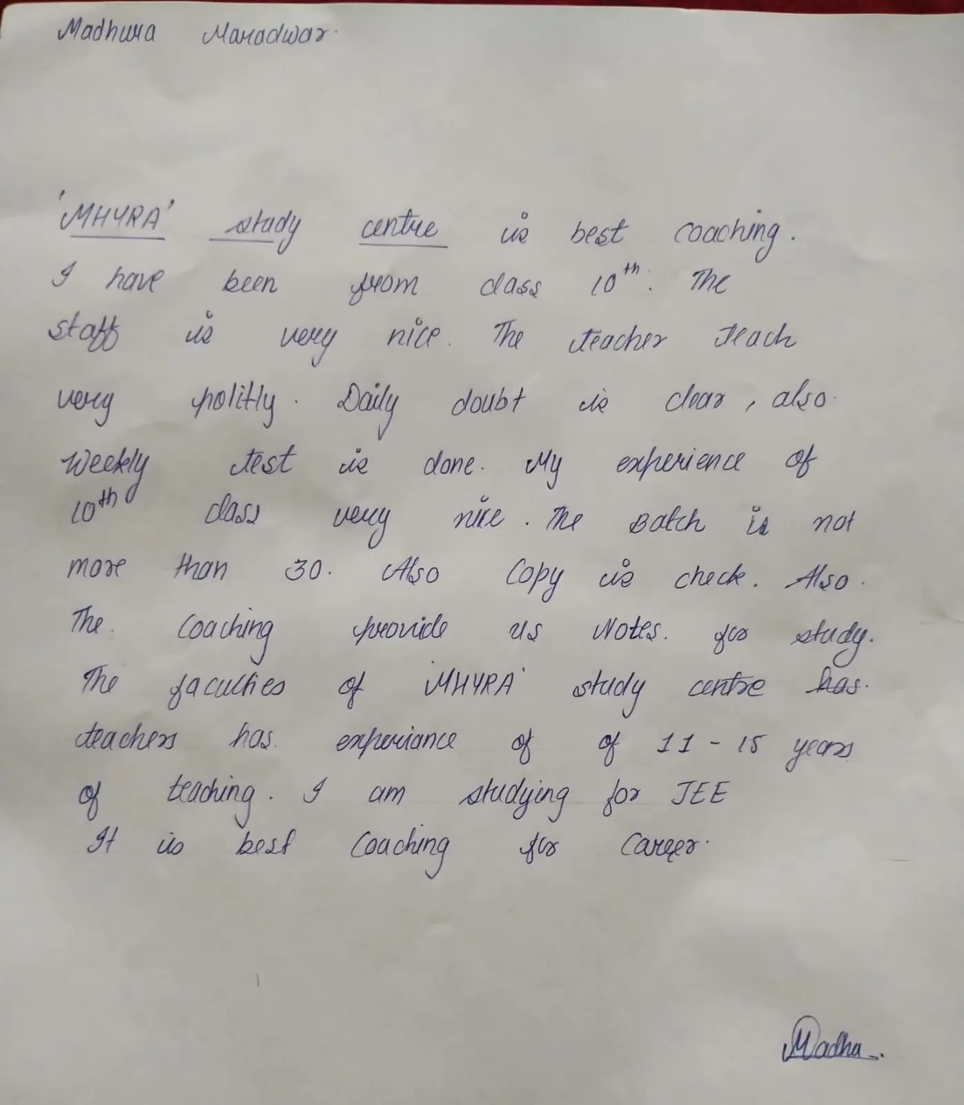 Hand Written Testimonials of our Student's